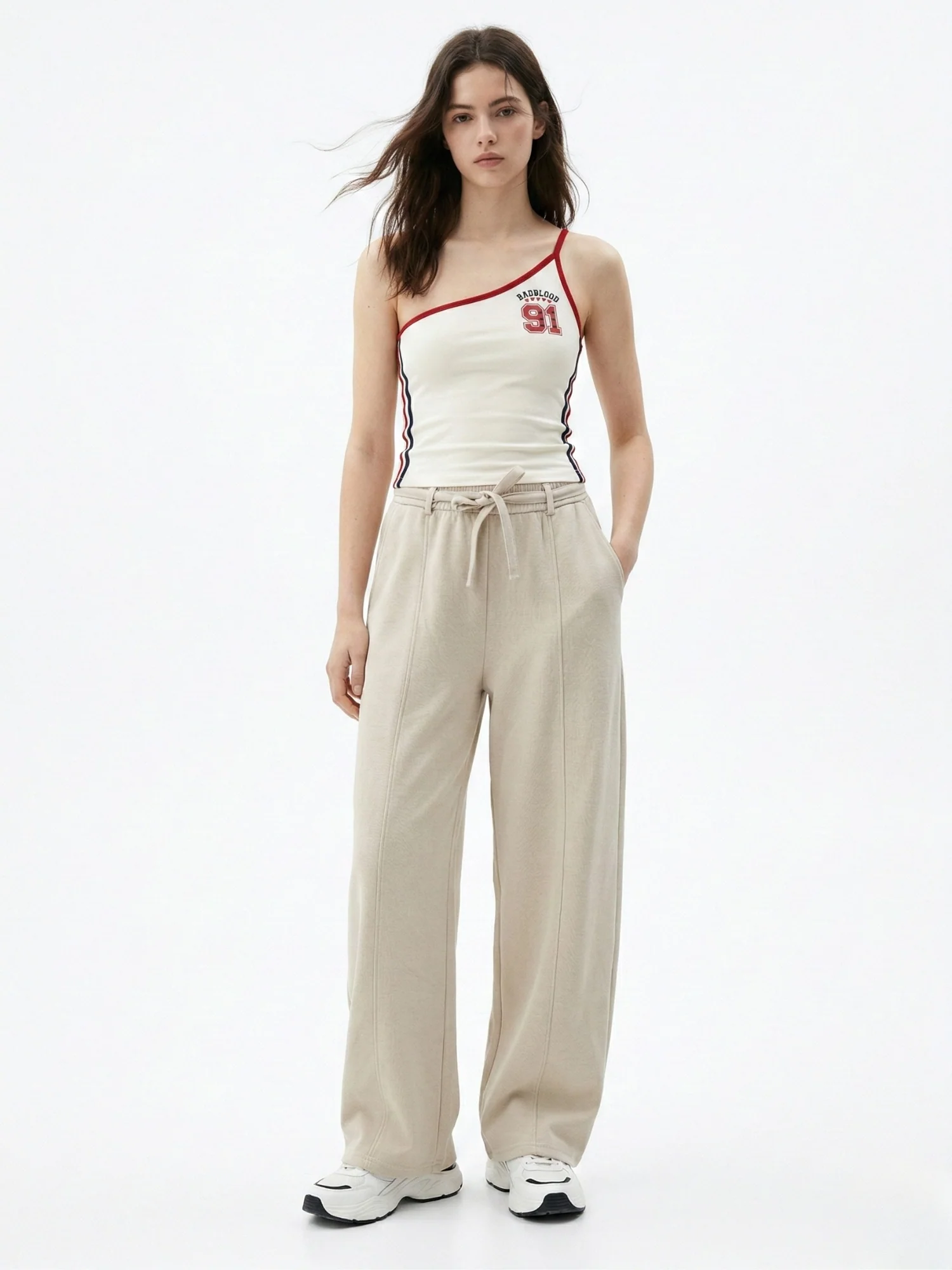 These beige high-waist baggy pants offer ultimate comfort without sacrificing style. Ideal for casual Fridays or shopping trips, style them with a striped tee and chunky sneakers to master the relaxed, neutral-tone aesthetic.