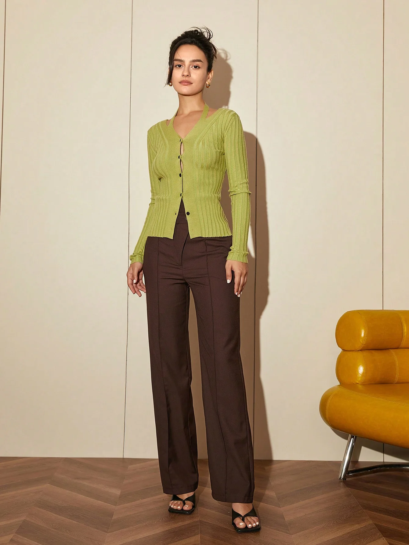 This vibrant green buttoned fashion top is a masterclass in professional simplicity. The unique button detailing and rich green tone offer a sharp, authoritative presence perfect for office meetings or professional lunches. Its versatile design ensures comfort while maintaining a bold, contemporary look for autumn outings.