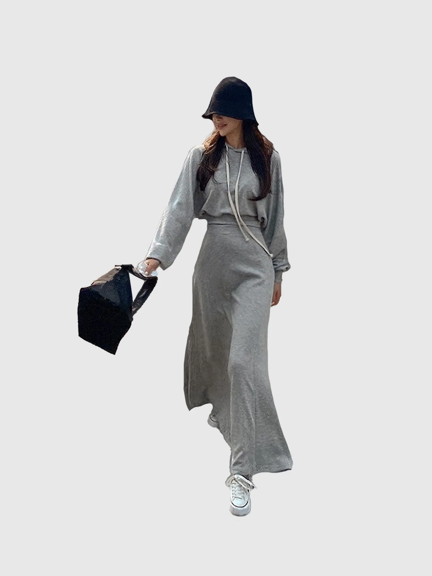 Solid Grey Hoodie And Skirt Co-Ord Set