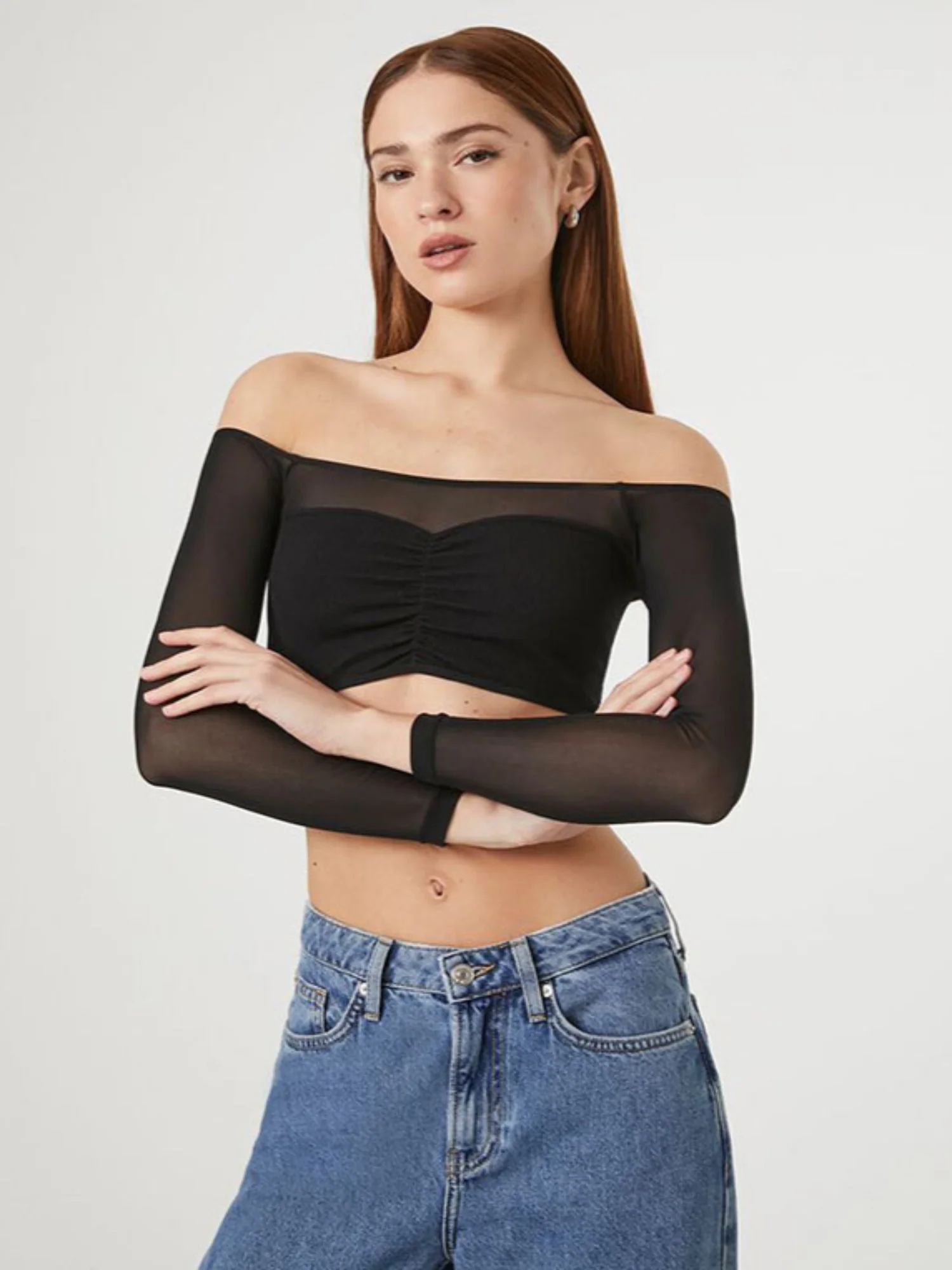 Black Off-Shoulder Smesh Top
